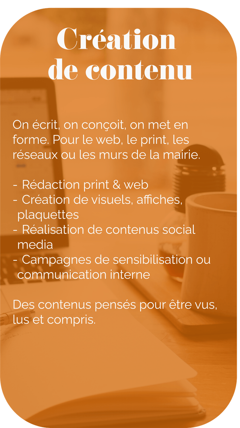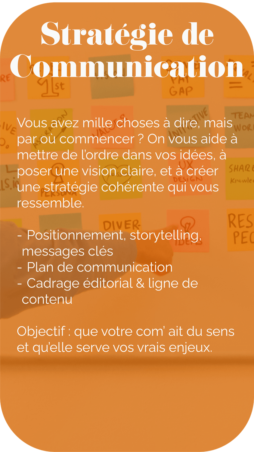 On construit des stratégies, on façonne des contenus, on raconte des histoires, et on rend votre com’ utile, lisible et alignée avec vos valeurs.